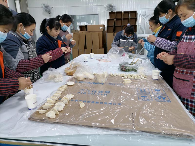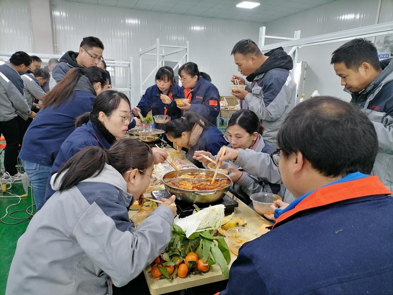廠區(qū)的同事們也是熱熱鬧鬧的開始了包餃子活動(dòng),還有的同事正在精心準(zhǔn)備著火鍋食材,冬天和火鍋是絕配哦!