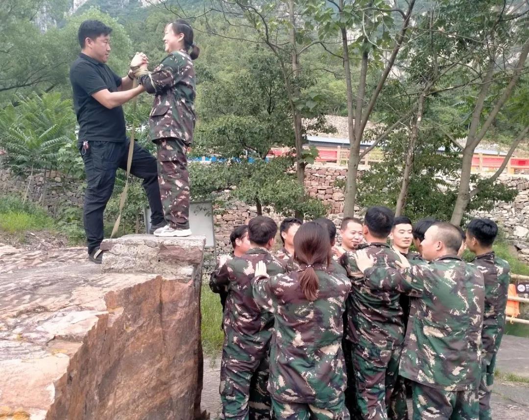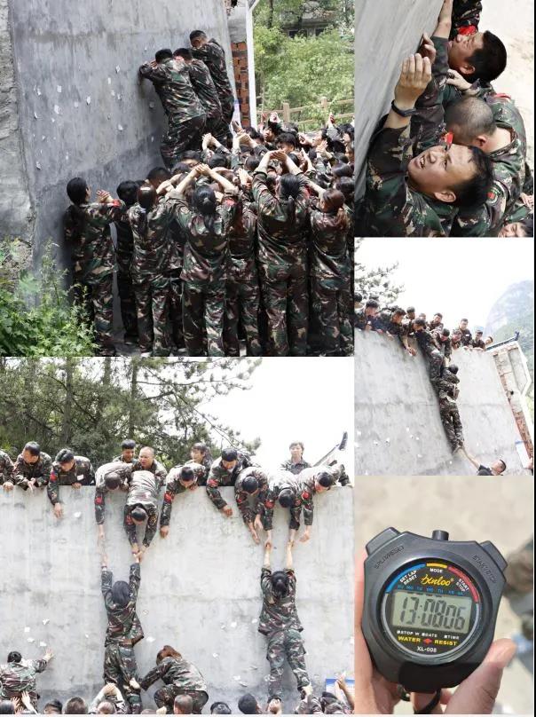 4、畢業(yè)墻——每個(gè)人都要翻越一堵4.2米且垂直的圍墻。這又是一個(gè)必須依靠集體的力量才能完成的項(xiàng)目。剛開始,大家都認(rèn)為這是很難完成而且比較危險(xiǎn)的任務(wù),估計(jì)需要半個(gè)小時(shí),甚至一個(gè)小時(shí)才能全部通過(guò)。我們先選出一個(gè)領(lǐng)導(dǎo)人來(lái)指揮、策劃,我們采用“疊人墻”的方法,讓身強(qiáng)力壯的同事們?cè)谙旅孀龅鬃?/span>大家奮力將他們先托上高墻,然后他們?cè)谏厦娼討?yīng),其他同伴踩著底座同伴的肩膀,一個(gè)一個(gè)成功地翻越了高墻。整個(gè)過(guò)程66人歷時(shí)13分零8秒,這樣驚人的成績(jī)是我們意想不到的,真的非常感謝在這個(gè)項(xiàng)目中讓我們踩著腿、踩著肩膀、拉我們上去的戰(zhàn)友們,踩到您的身上真的不忍心下腳,真的是踩在您的身上疼在我的心上,為了團(tuán)隊(duì)的勝利沒辦法,必須要踩上去,多猶豫一分鐘您就多受累一分鐘。我是女生中第一個(gè)上去的,慌忙中記不清是踩在誰(shuí)的腿上、肩膀上、拉我上去的面孔,總之,就是感恩、感激、感謝!真心感謝每一份默默辛勤付出的戰(zhàn)友們!正是有您的付出我們團(tuán)隊(duì)才會(huì)順利“畢業(yè)”。這個(gè)項(xiàng)目讓我領(lǐng)悟到一個(gè)團(tuán)隊(duì)要想成功必須有一個(gè)領(lǐng)導(dǎo)者,有為此默默付出團(tuán)結(jié)一致的心才能成功。“人心齊、泰山移”,從古至今,團(tuán)隊(duì)融合與凝聚都在企業(yè)的成長(zhǎng)壯大中起著非常重要的作用。積極的團(tuán)隊(duì)士氣、目標(biāo)、職業(yè)生涯規(guī)劃在組織內(nèi)積累、傳播、充實(shí)、整合,不僅加強(qiáng)了團(tuán)隊(duì)建設(shè),提升企業(yè)形象,也可以更好的完善企業(yè)的性格,激活企業(yè)的生命力,可以說(shuō)是企業(yè)動(dòng)力的源泉,可以從根本上提升企業(yè)的綜合素質(zhì)和競(jìng)爭(zhēng)優(yōu)勢(shì)。