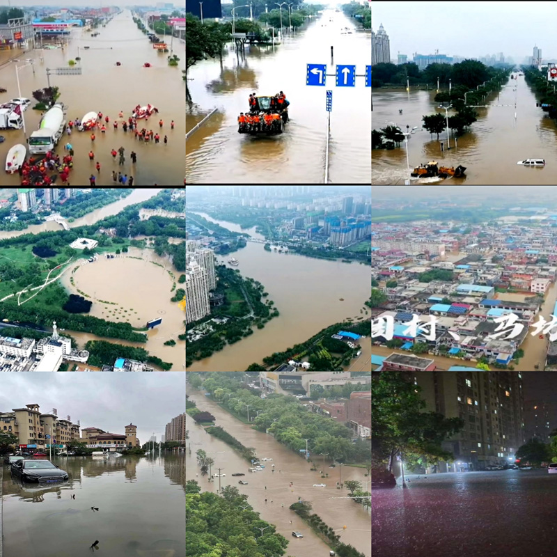 從航拍可以看到新鄉(xiāng)市衛(wèi)河兩岸大面積村莊、社區(qū)、農(nóng)田、道路被洪水淹沒,村莊的村民大部分已疏散轉(zhuǎn)移至附近救助點(diǎn)。面對災(zāi)情,我們一條心,共抗洪水!單位同事24小時參與搶險救援,保障公司財產(chǎn)損失降到最低。7月20日至7月21日暴雨持續(xù)兩天兩夜,從來沒覺得下雨是件可怕的事情,這次的暴雨下的讓人揪心,暴雨后的第二天整個新鄉(xiāng)市及周邊縣區(qū)全部被淹,全國各地救援志愿者紛紛趕來救援,讓新鄉(xiāng)人民感到非常的暖心!