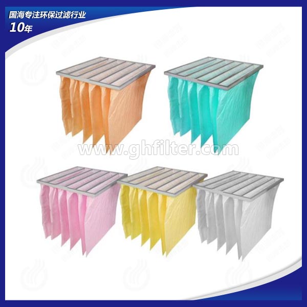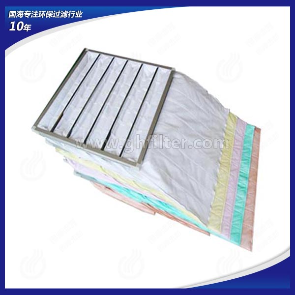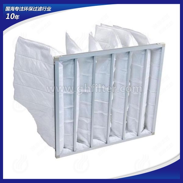 中央空調(diào)及通風(fēng)系統(tǒng)前端通常會配有初效板式空氣過濾器與中效袋式空氣過濾器。初效板式空氣過濾器作為最前端的預(yù)過濾處理設(shè)備,主要過濾通風(fēng)系統(tǒng)中5μm以上的粉塵粒子,而中效袋式空氣過濾器主要過濾通風(fēng)系統(tǒng)中1-5μm的粉塵粒子懸浮物。中效袋式空氣過濾器與初效板式空氣過濾器在使用更換過程中有些相同,都在通風(fēng)系統(tǒng)中具有阻力小,容塵量大,更換方便的特點(diǎn),因此被很多行業(yè)所采用。袋式中效過濾器,可用于空調(diào)系統(tǒng)的中級過濾,以保護(hù)系統(tǒng)中下一級過濾器和系統(tǒng)本身,在對空氣凈化潔凈度要求不嚴(yán)格的場所,經(jīng)中效過濾器處理后的空氣可直接送至用戶。鋁框袋式過濾器采用優(yōu)質(zhì)合成纖維或進(jìn)口玻璃纖維為濾材,鋁合金型材外框,內(nèi)部噴塑冷拔絲支撐架。國海袋式過濾器有效過濾面積大,容塵量大,阻力小,通風(fēng)量大;框架及支撐架均可重復(fù)使用,更換過濾器時(shí)僅需更換過濾袋,且方便快捷,大大降低運(yùn)行成本費(fèi)用。廣泛應(yīng)用于電子、制藥、醫(yī)療、食品等行業(yè)的過濾系統(tǒng),是目前結(jié)構(gòu)最好的中效過濾器。
