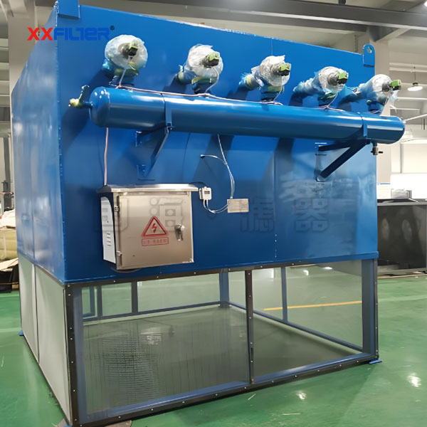 2、自動(dòng)清灰:自潔式空氣過濾器具有自動(dòng)清灰功能,當(dāng)濾筒上的阻力達(dá)到設(shè)定值時(shí),脈沖反吹系統(tǒng)啟動(dòng),反吹氣體從濾筒內(nèi)部沖擊濾筒,將濾筒上的灰塵振落,實(shí)現(xiàn)自動(dòng)清灰。